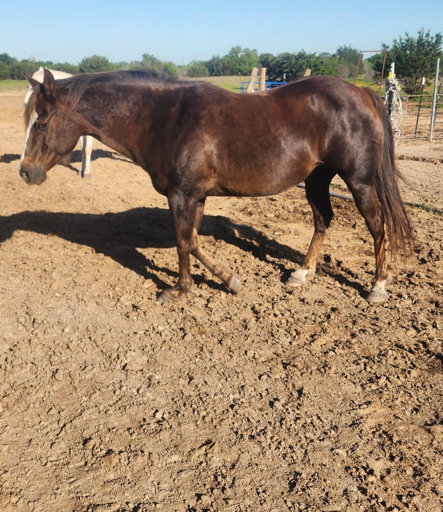 Meet Leela, a 27-year-old mare who has come a long way since arriving at Broke-n-Beautiful. When she first joined us, she was over 400 pounds underweight, but thanks to the love and care she’s received, she has started to gain some weight. Leela is determined to continue her journey to better health, though she is currently facing some tendon issues in her front hoof, which has put her on stall rest for the time being. Despite her challenges, Leela is receiving plenty of attention from both her fellow horses and the wonderful people here at the sanctuary. She is a sweet and loving mare, known for her nurturing instincts. In her previous home, she selflessly shared most of her food with her foal, Kai, to ensure his survival. Her dedication to him shows just how special she is. Leela is truly a gentle soul who would go above and beyond for those around her, even if it means putting herself through discomfort. We are grateful to have her with us as she continues to heal and thrive.