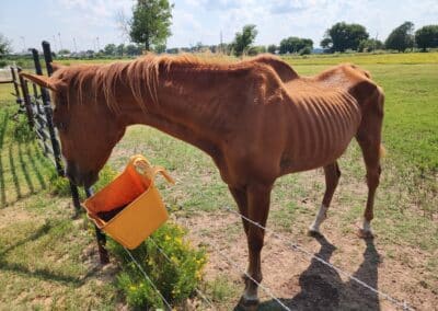 You’ll never look as deeply into an animal’s eyes as you will into a horse’s eyes. Those eyes can show you love and commitment, but often the first thing we see is their fear. Horses wear their abuse and hopelessness. When we find them, they know they are at the end and all alone. Maybe they were someone’s pet they couldn’t care for or didn’t want anymore. Maybe their owner found they were no longer of use and they became one more mouth to feed. They are packed into confined places with little or no food or water. They have scars from being pushed and shoved into trailers on their way to auction. Each day they deteriorate further, until emaciation becomes their grim reality. This is when they are sold to kill pens to suffer an incomprehensible death. Our non-profit was started by Robin Hilliard, and Krystal Hilliard. It became our mission to rescue any horse we could… to provide for, love, and nurture them back to the best versions of themselves. OUR PURPOSE became clear: to secure adoptions and find them good homes for the remainder of their lives. It costs more money to do this than we ever imagined.