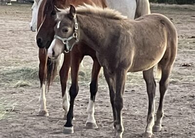 At Broke N Beautiful, we are excited to introduce our spirited young gelding, born on August 13, 2024, a vibrant blend of Arabian and AQHA lineage, showcasing the best qualities of these magnificent breeds. With his playful personality and eager spirit, he is not only ledlin broke but also ready to embark on a journey of training and development that will unlock his full potential. As he begins to explore the world, we invite you to join us in celebrating his progress and the magical bond that forms through trust and companionship between horse and rider. Together, we can foster a bright future for this remarkable equine.